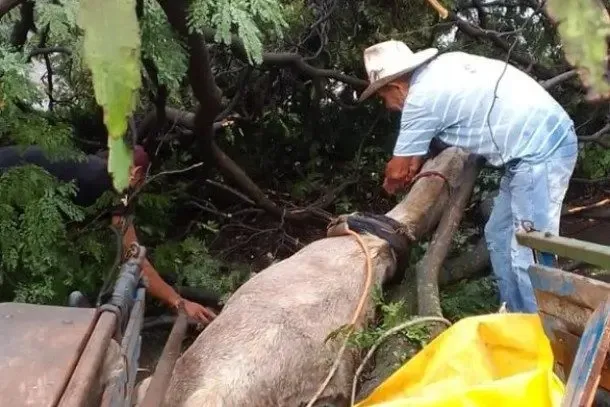 Uma árvore caiu em cima de uma carroça durante a ventania que atingiu Paranavaí na tarde desta segunda-feira, 4