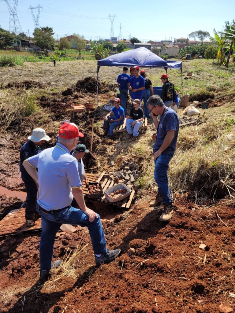 Logo pela manhã, servidores públicos de diversas secretarias municipais, profissionais do Instituto de Desenvolvimento Rural do Paraná (IDR-PR), alunos do Colégio Agrícola Estadual Manoel Ribas, membros das hortas solidárias, ambientalistas, voluntários da comunidade, e até mesmo o prefeito da cidade, Júnior da Femac, colocaram literalmente a mão na terra para contribuir na recuperação de uma das nascentes do Córrego Tarumã.
