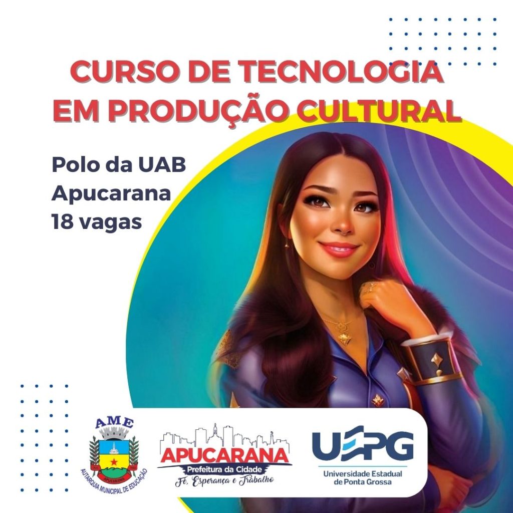 A Universidade Estadual de Ponta Grossa (UEPG) está com inscrições abertas para o 2º Vestibular EAD 2023. Nesta edição, Apucarana está sendo contemplada com o curso superior de Tecnologia em Produção Cultural. Ao todo, são dezoito vagas disponíveis.