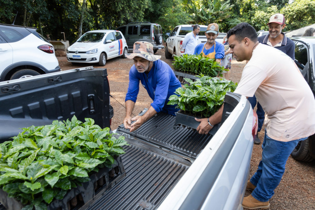 A Prefeitura de Apucarana, por meio da Secretaria da Agricultura, iniciou hoje a entrega de mais um lote de 185 mil mudas de café. Os cafeicultores já começaram a retirar seus lotes nesta quinta-feira, no Horto Municipal, no Jardim Eldorado. O evento teve a presença do prefeito Junior da Femac, do secretário de agricultura, Gerson Canuto, demais secretários municipais e do vereador Luciano Facchiano.