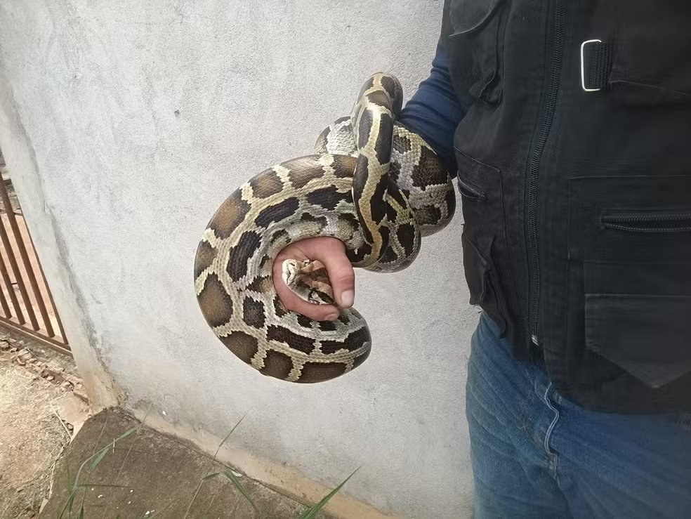 Píton-indiana de 2 metros é capturada em terreno baldio, em Apucarana; espécie pode trazer risco para fauna brasileira
