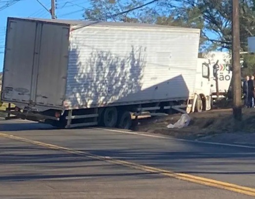 Um caminhão baú está interditando uma das vias da BR-376, próximo ao Núcleo Habitacional Adriano Correia, no trecho que dá acesso à...