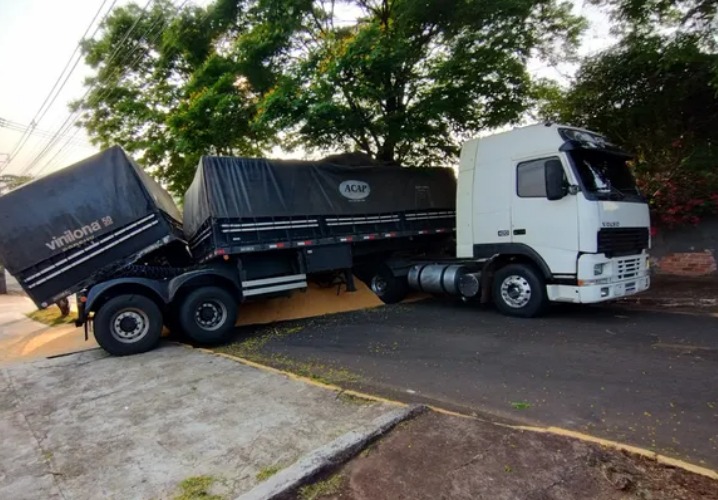 Uma carreta bitrem carregada com grãos de milho tombou no bairro Vila Regina, durante a madrugada desta terça-feira (24). O,...