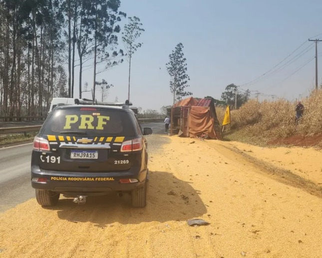 Uma carreta carregada com 50 toneladas de milho tombou no início da tarde desta quinta-feira (12) na BR-376, em trecho do Contorno Sul de...