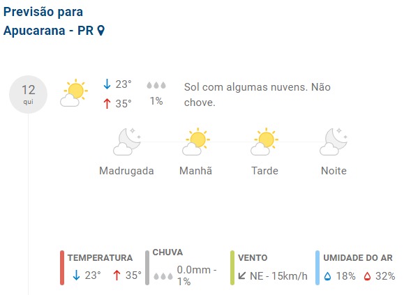 O site (Simepar), afirma que a sexta quente em Apucarana. A máxima poderá ser de 36°C e a mínima de 22°C. Beba...