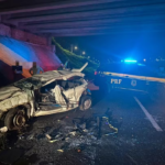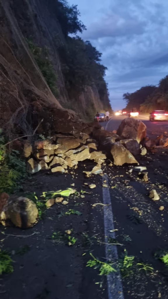 Rochas caem em cima de carro durante deslizamento na BR-153, no Paraná