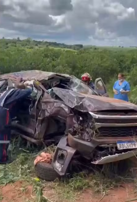 Três adultos e uma criança de dois anos ficam feridos após caminhonete sair da pista e capotar em rodovia do Paraná