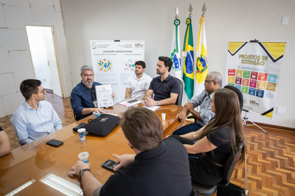 O prefeito Rodolfo Mota e secretários municipais receberam da direção da Universidade Tecnológica Federal do Paraná (UTFPR), campus Apucarana, o catálogo atualizado dos projetos de extensão que estão em andamento na instituição. O prefeito reiterou que uma das prioridades da sua gestão é buscar uma maior aproximação com as universidades, visando aprimorar serviços e encontrar soluções para demandas específicas da cidade.