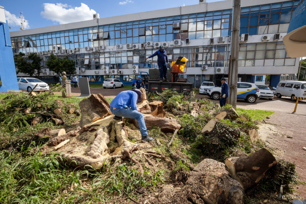Prefeitura remove árvores condenadas no Centro Cívico para garantir segurança da população