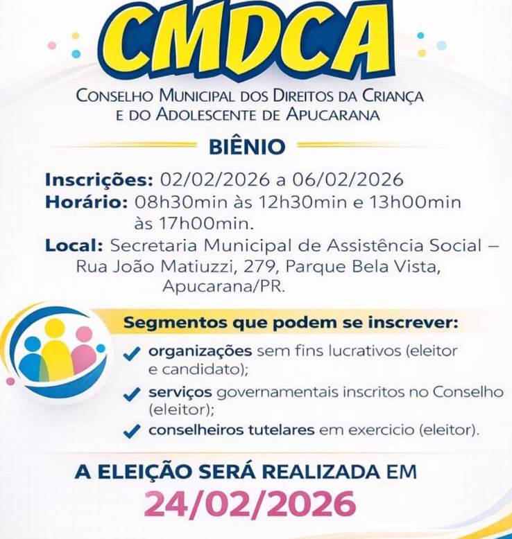 Eleição do CMDCA em fevereiro fortalece participação das entidades e proteção à infância