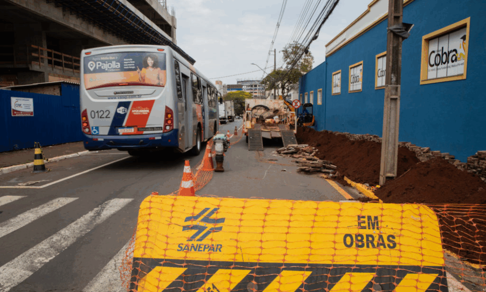 Obras da Sanepar exigem atenção redobrada dos motoristas em trecho da Rua Guarapuava