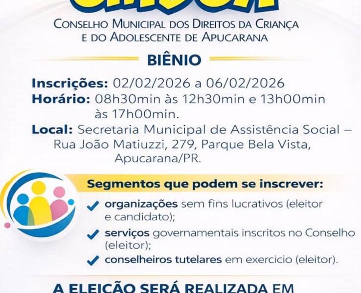 Apucarana iniciou o processo eleitoral para a escolha dos representantes da sociedade civil no Conselho Municipal dos Direitos da Criança...